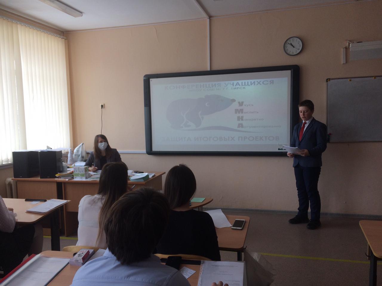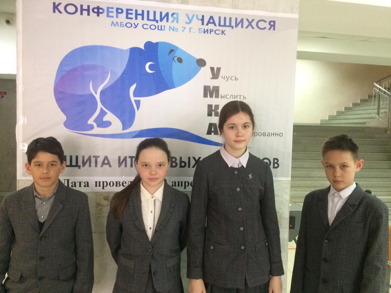 В МБОУ СОШ № 7 г. Бирска 9 апреля 2021 года прошла конференция обучающихся школы под названием «УМКА»: У - учусь, М - мыслить, К - конкретно, А - аргументированно. В работе конференции все обучающиеся школы с 5 по 9 классы защищали свои годовые индивидуальные проекты. Было организовано 29 секций, в состав жюри по оценке проектов и качества их защиты входили учителя и ученики 10-х классов, которые более строго оценивали работы и уровень выступления участников секции. И это не случайно.