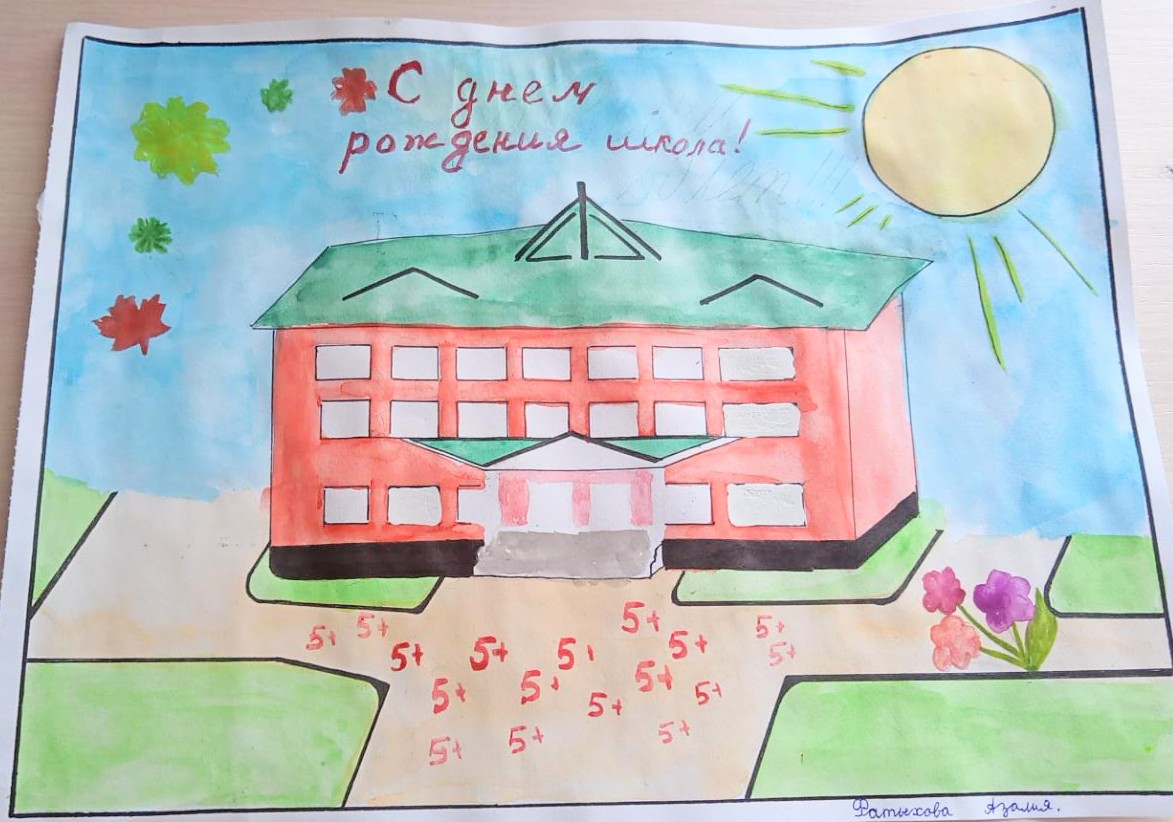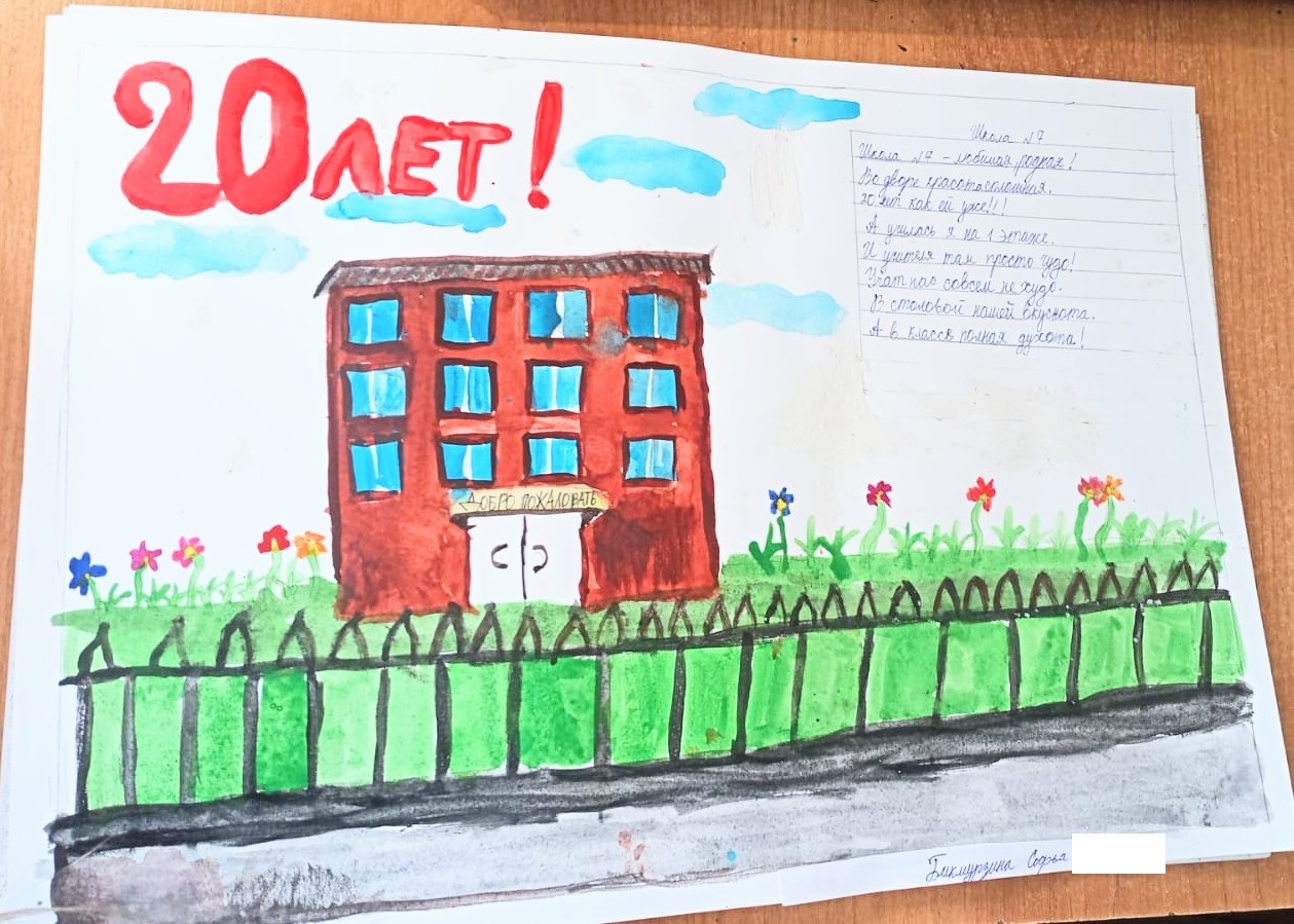 Для своей родной школы, в честь ее 20-летнего юбилея ребята начальной школы нарисовали рисунки и поздравили её стихотворениями собственного сочинения.